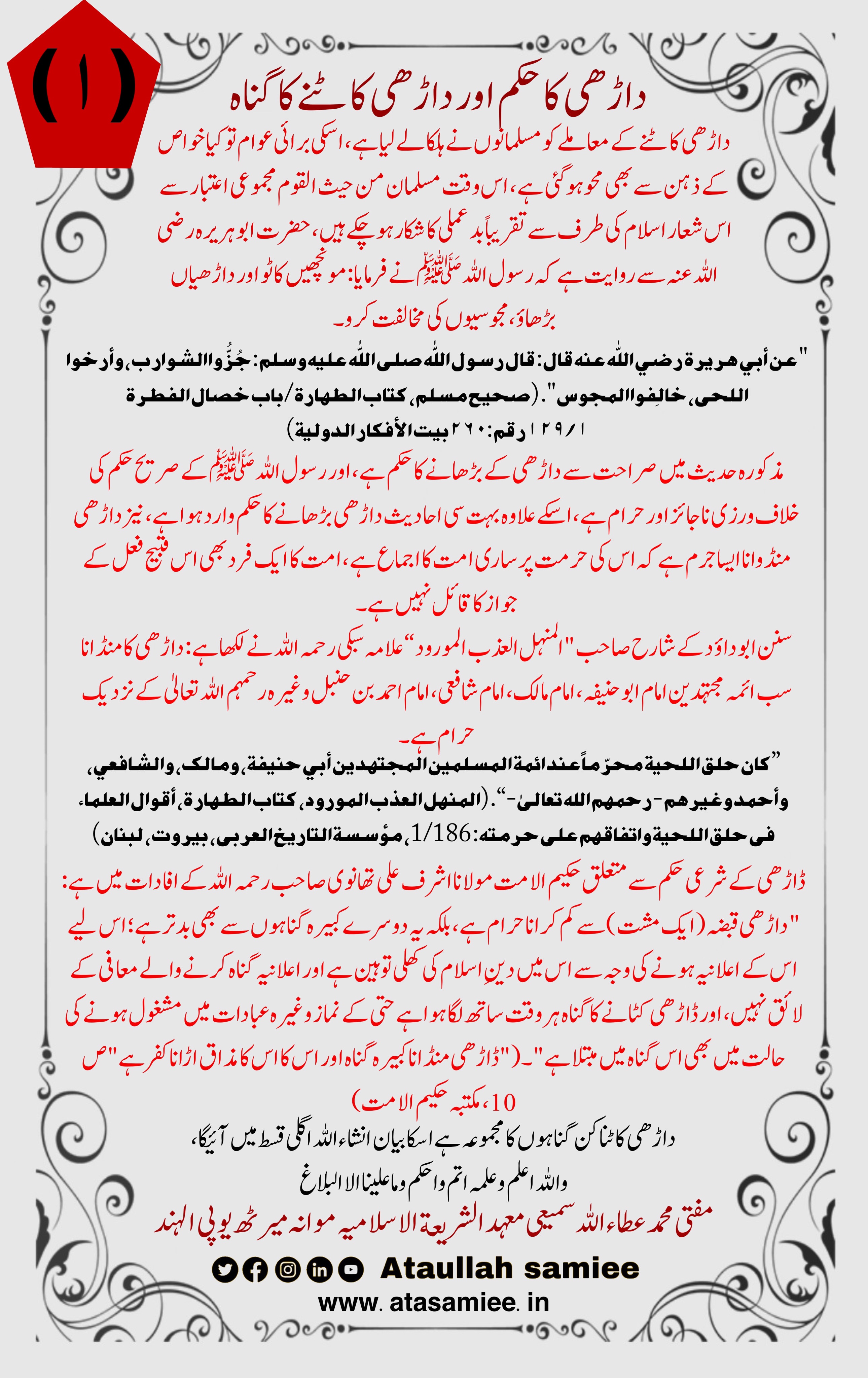 داڑھی رکھنے کا حکم اور داڑھی کاٹنے کا گناہ قسط (۱)