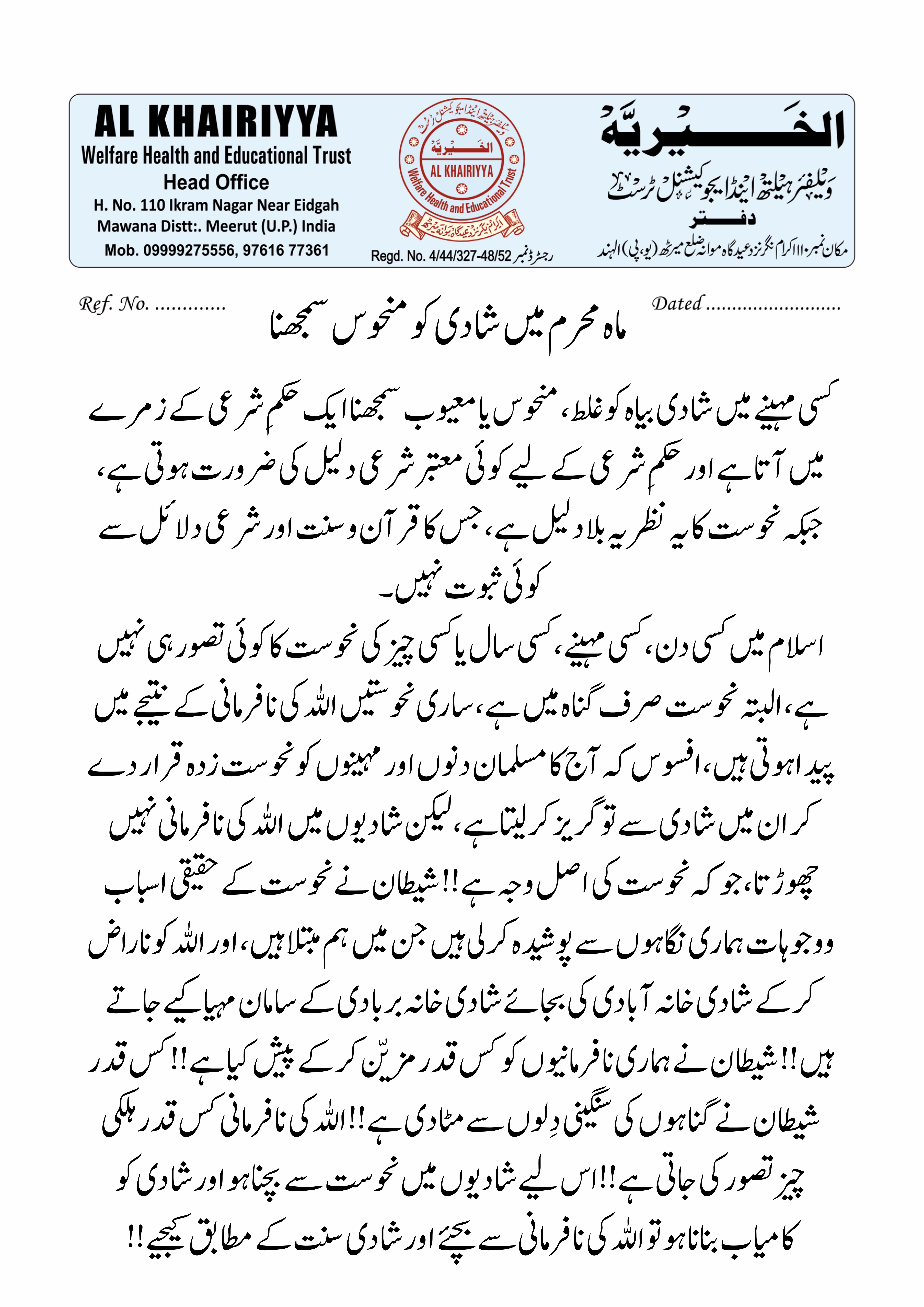 محرم الحرام میں نکاح کرنے کو منحوس سمجھنا